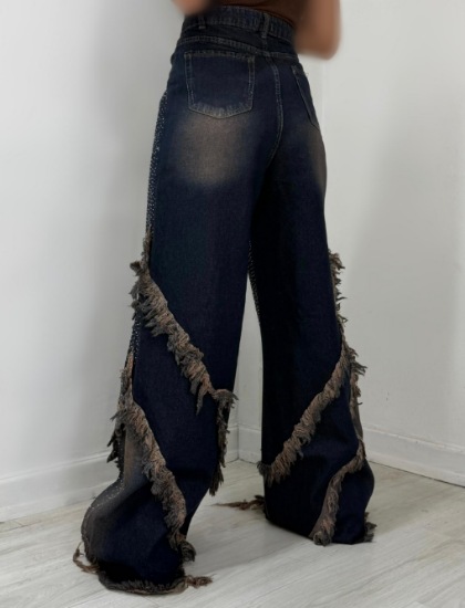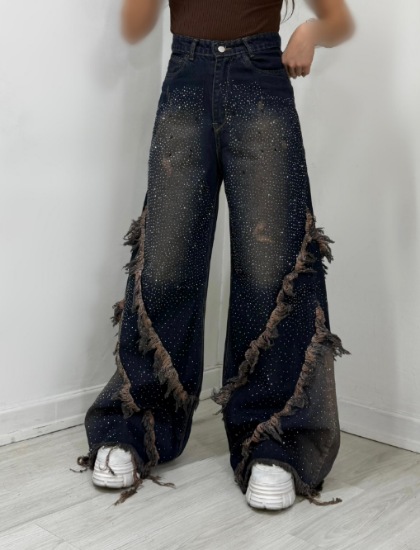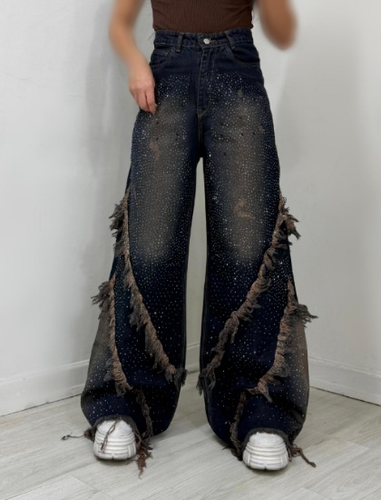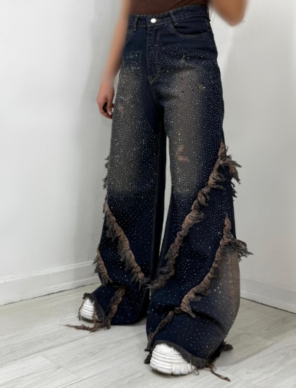 خانه شلوار شلوار جین فول بگ نگین دار